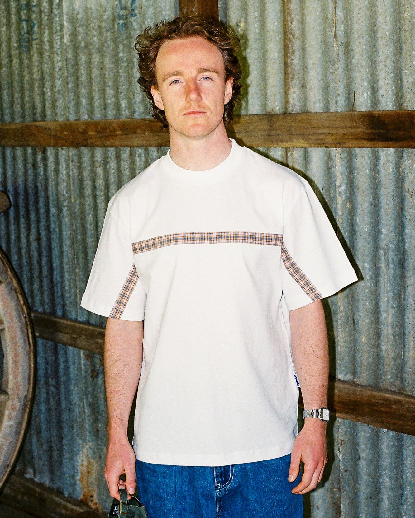 t-shirt plaid sunken - white